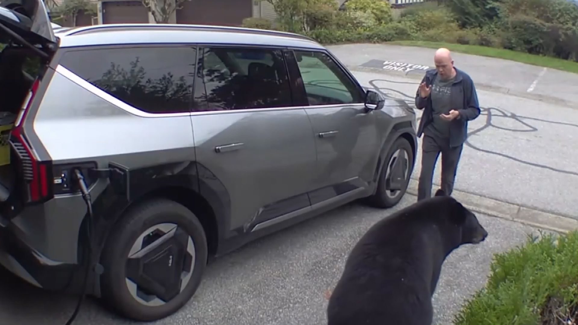 Just as Gold got into his car, a bear cub appeared on the scene.