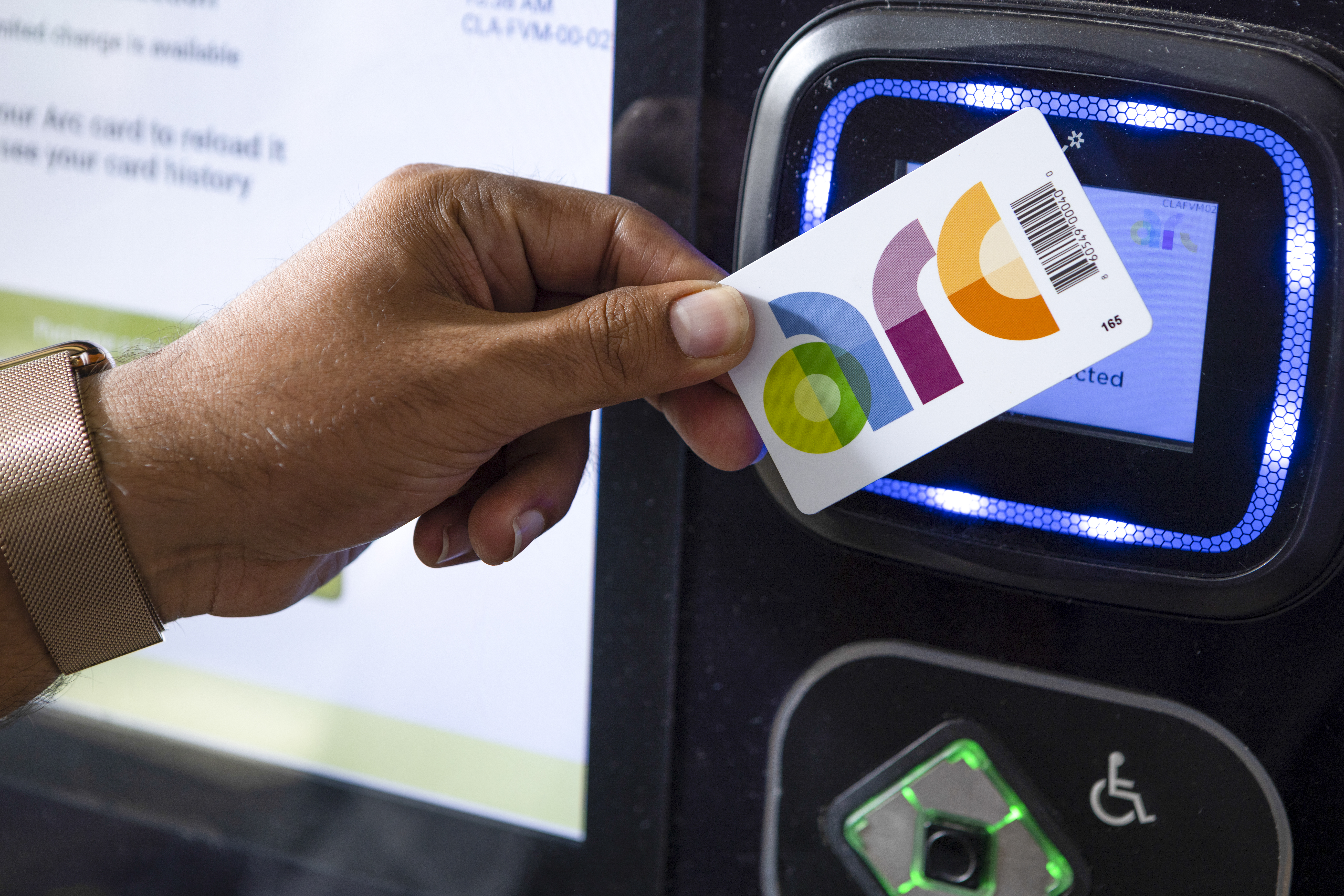 With Arc, transit users can load money onto their cards using a credit card, debit card or cash. Riders can load money onto their Arc cards online, by phone, at an Arc vending machine or at an in-person service centre or retail outlet.