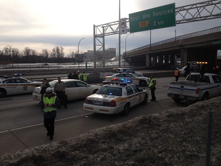 All westbound lanes were shut down for over three hours and to ease traffic, one eastbound lane along was also closed to allow vehicles to exit from the 40 W. The westbound exit to the Henri-Bourassa overpass remained closed until nearly 5:30 p.m.