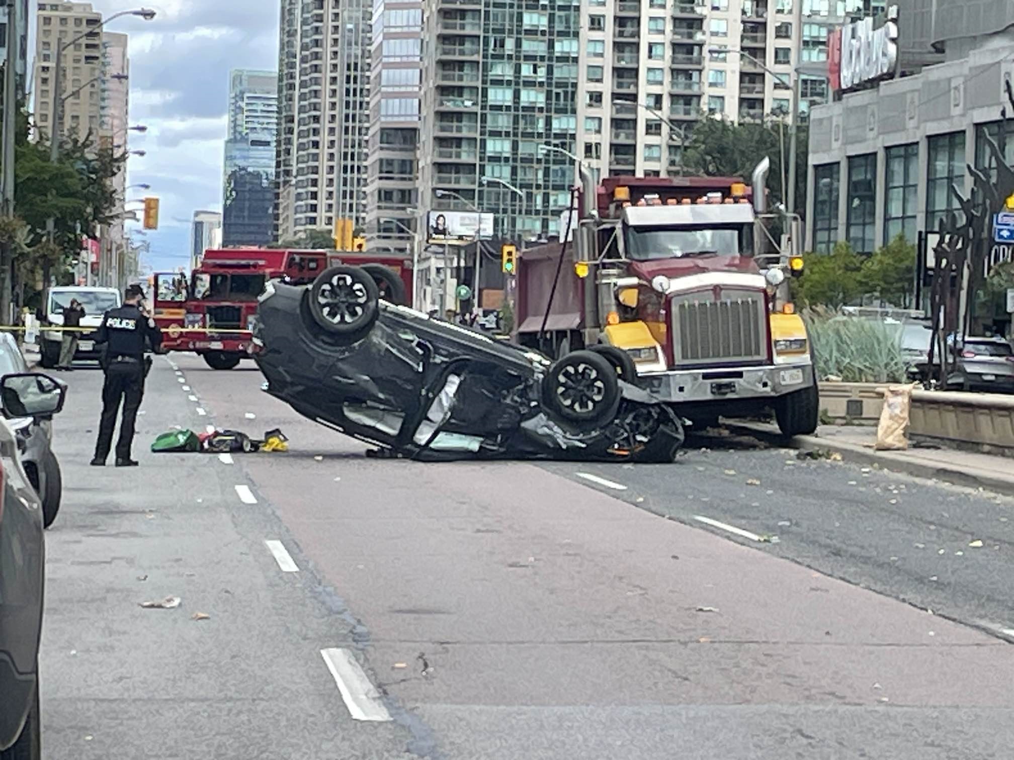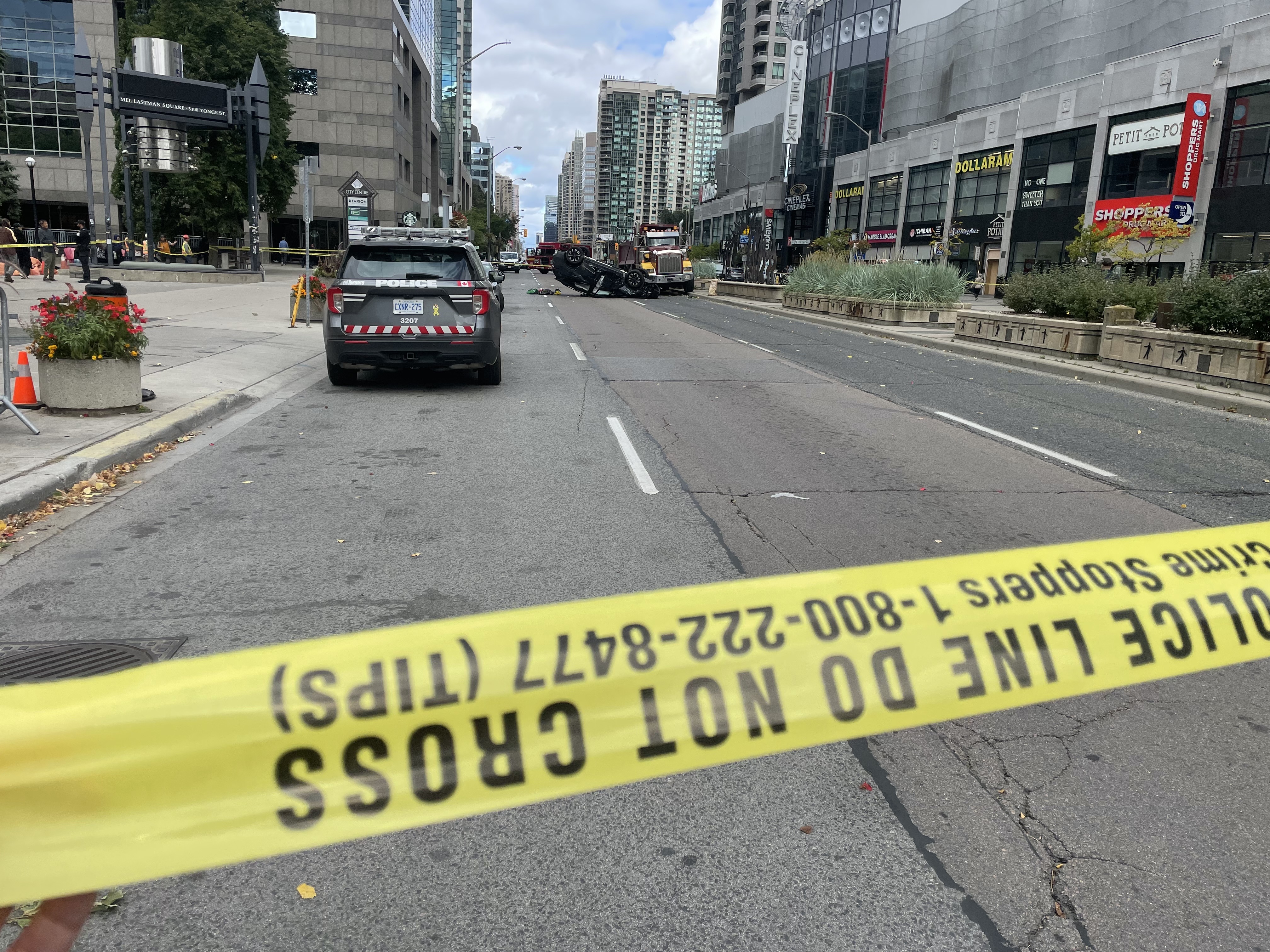 “It was at that time that an occupant in the black pickup actually shot at the Kia motor vehicle,” he said, adding the Kia headed south on Yonge Street where it was involved in a collision and flipped over.