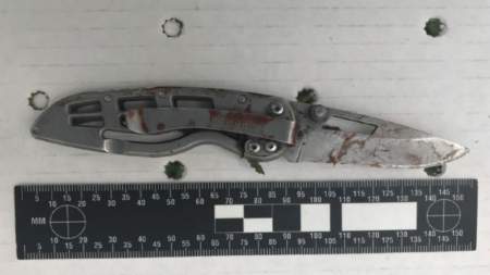 Two officers struggled to subdue the man, still wielding the knife.
