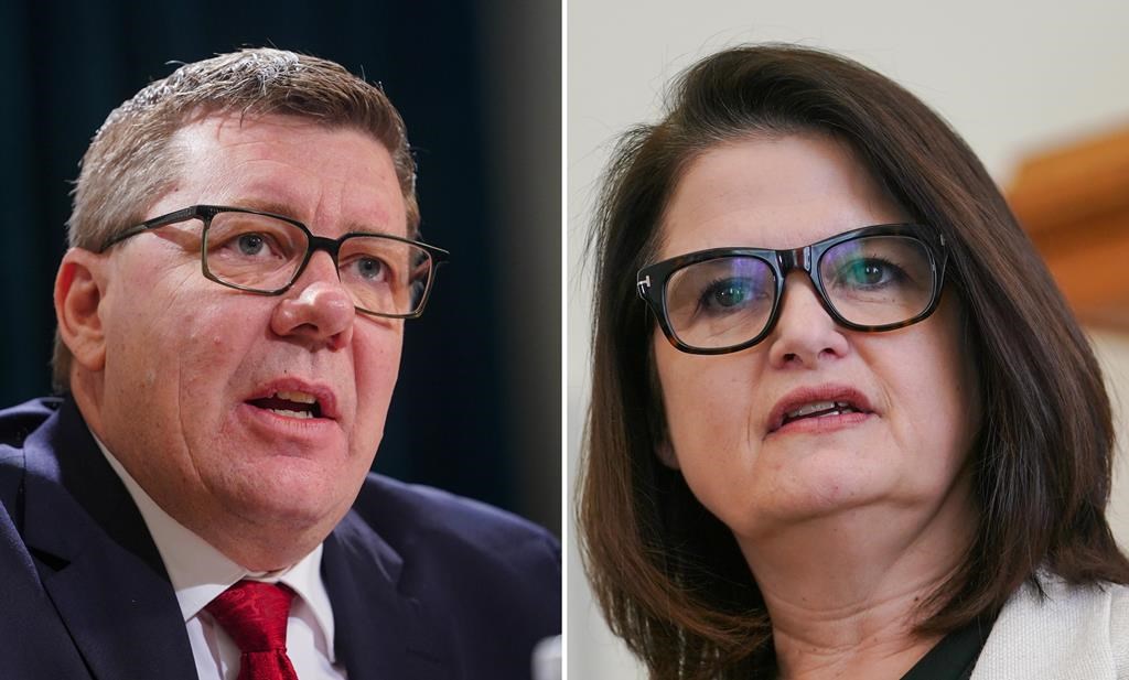 Beck says the province’s health-care system has suffered during Moe’s time as premier. She says streets are no longer safe and the province is near the bottom nationally in creating full-time jobs.