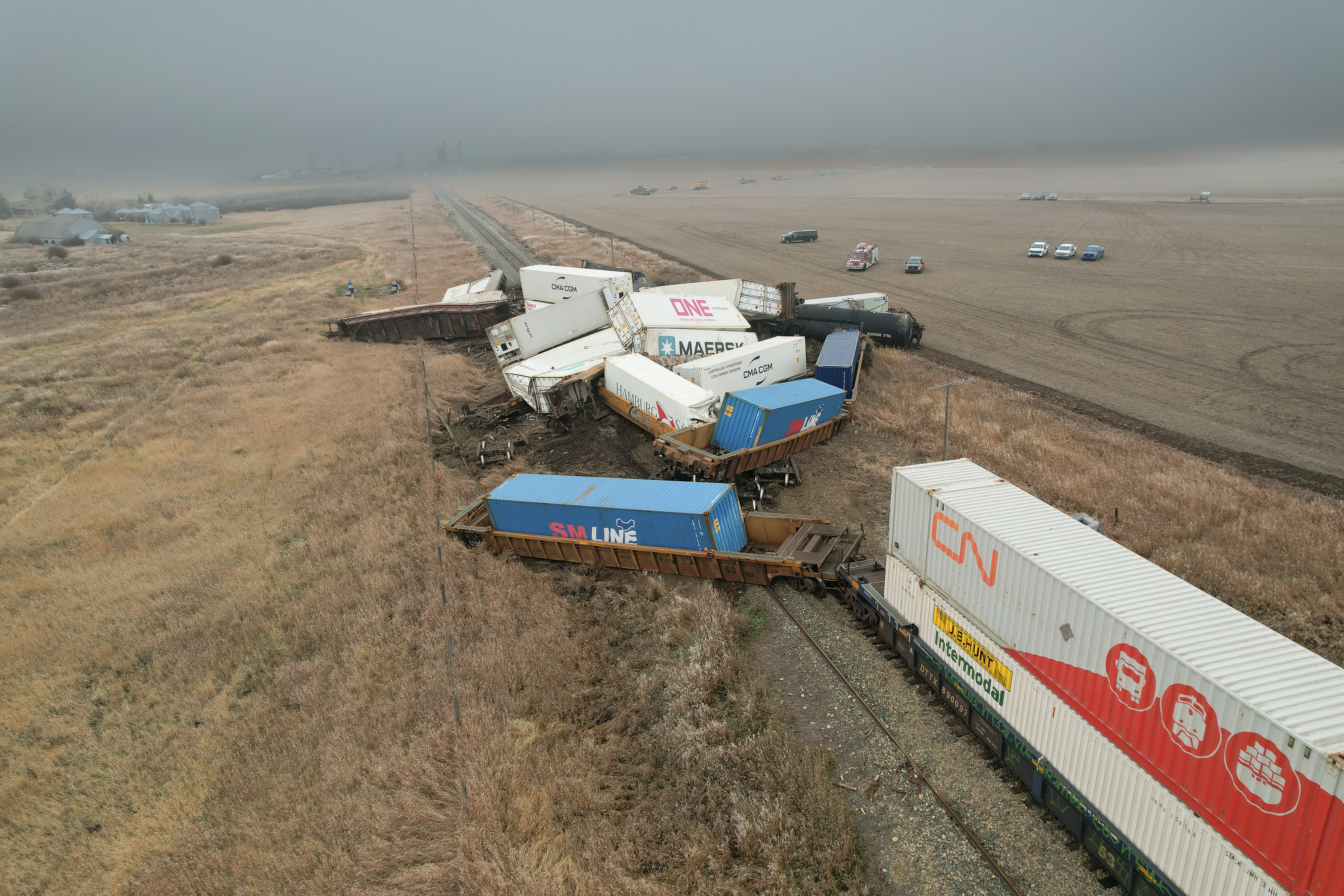 In a news release, the RCMP said that 19 cars are off the tracks, but investigators are still at the scene trying to determine what is in them.