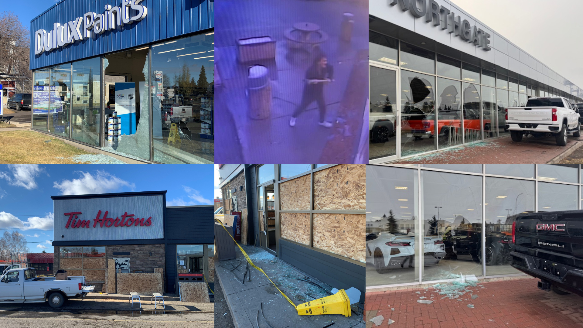 Several businesses in north Edmonton are cleaning up broken glass and boarding windows after a vandal went on a smashing spree Tuesday morning.