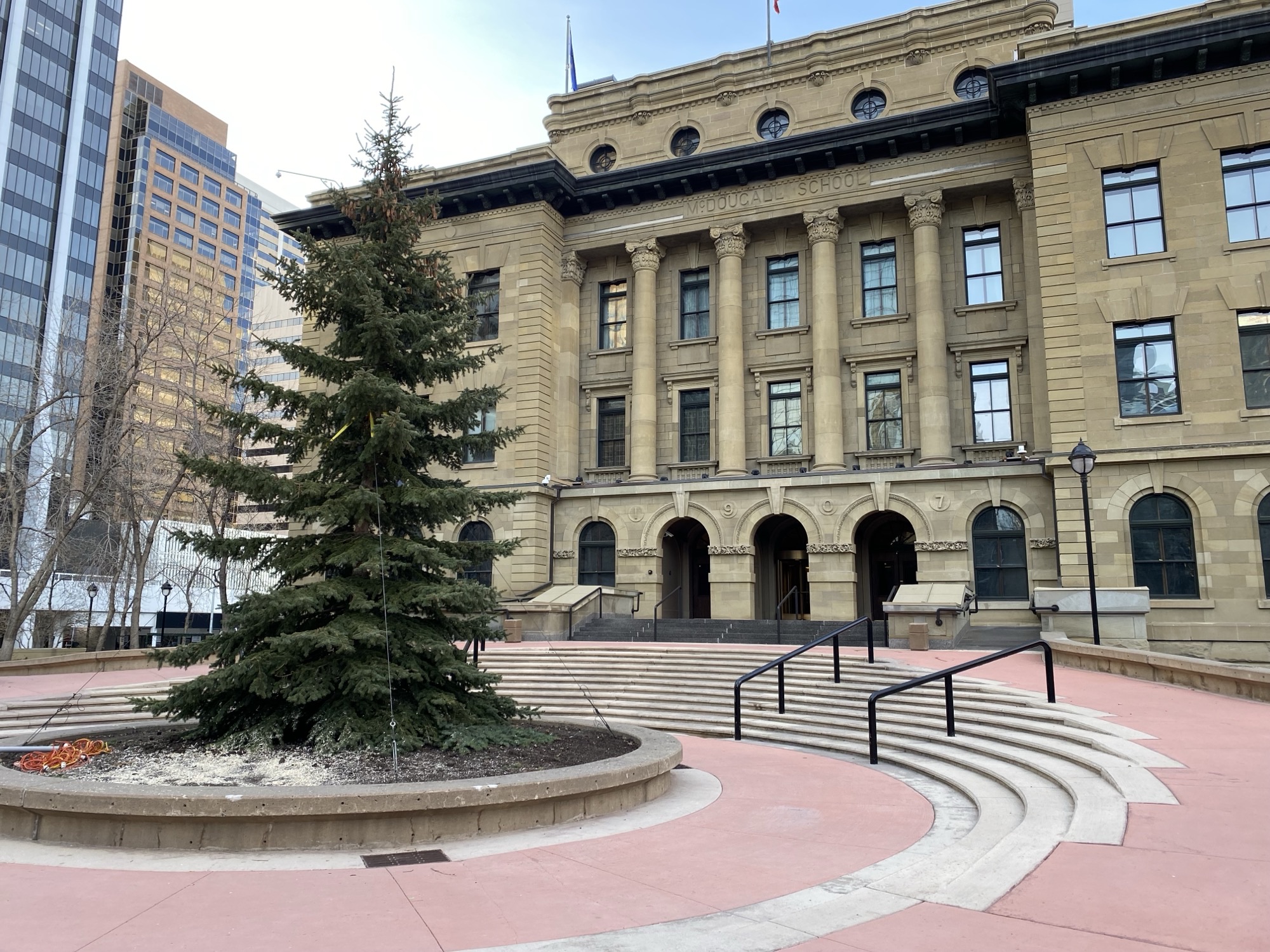 City crews say the tree, now in front of the McDougall Centre, will be decorated with more than 1,400 lights starting Monday. The full unveiling will take place on Thursday.