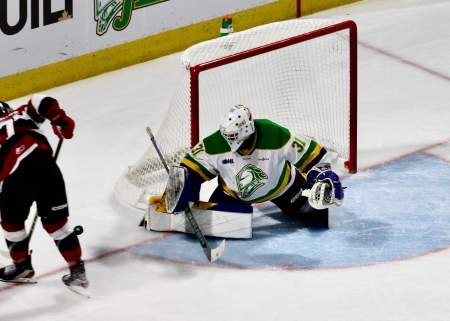 The win moved the Knights two points ahead of the Windsor Spitfires for the top spot in the Ontario Hockey League standings.