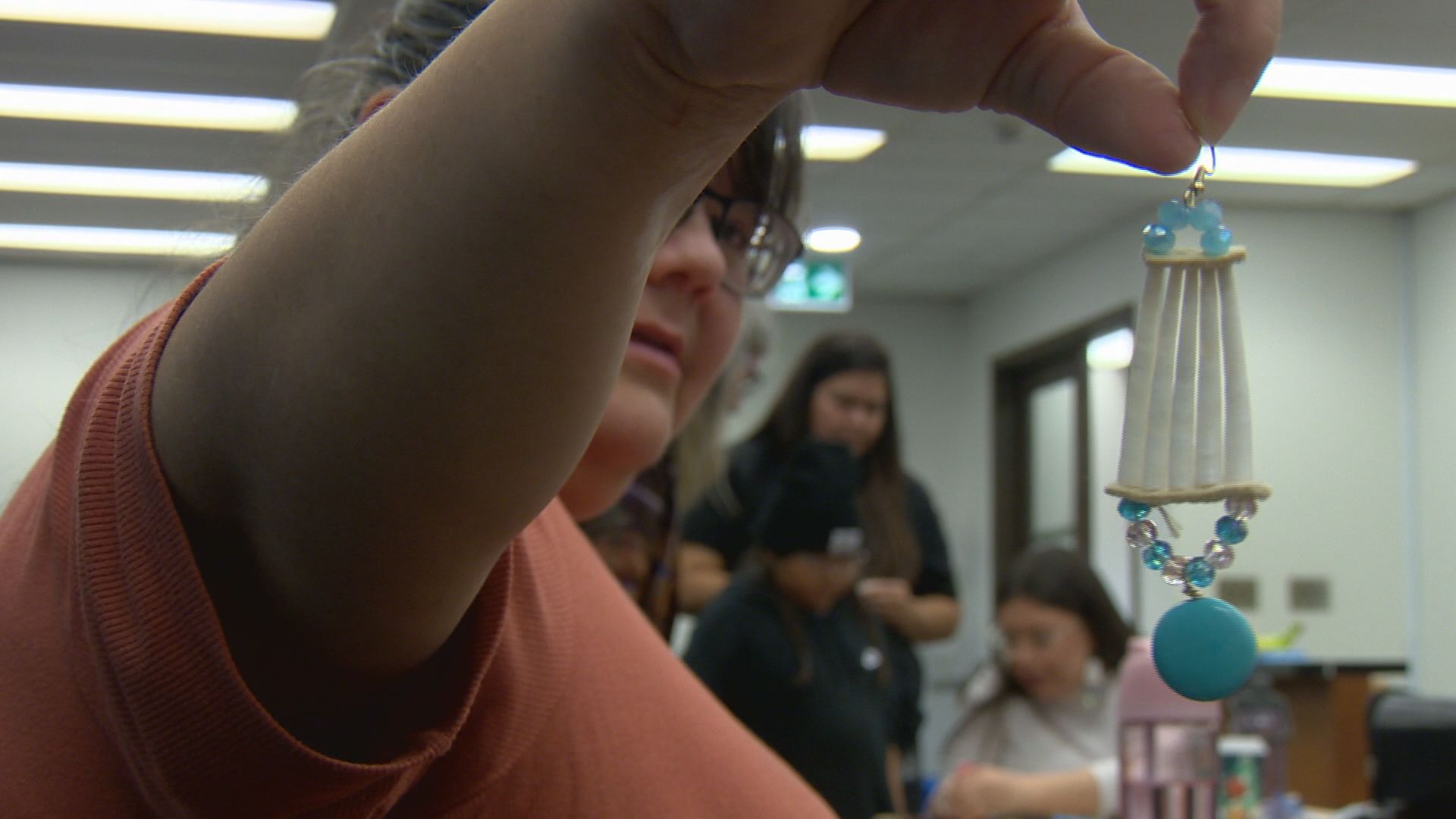 “It was like a symbol of status because they were so expensive and hard to get,” she said. “There have been dentalium that have been found around the Forks, so right here in Winnipeg, and that is quite a distance. I just think of those husbands that brought back a lot of them, trading them, for their wives or daughters to cover their dresses with. It was…to show how valued they were in their community.”