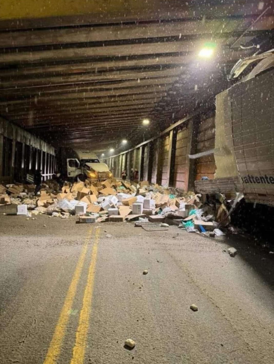The road was closed in both directions for hours to inspect the shed and clean up debris scattered across the highway.