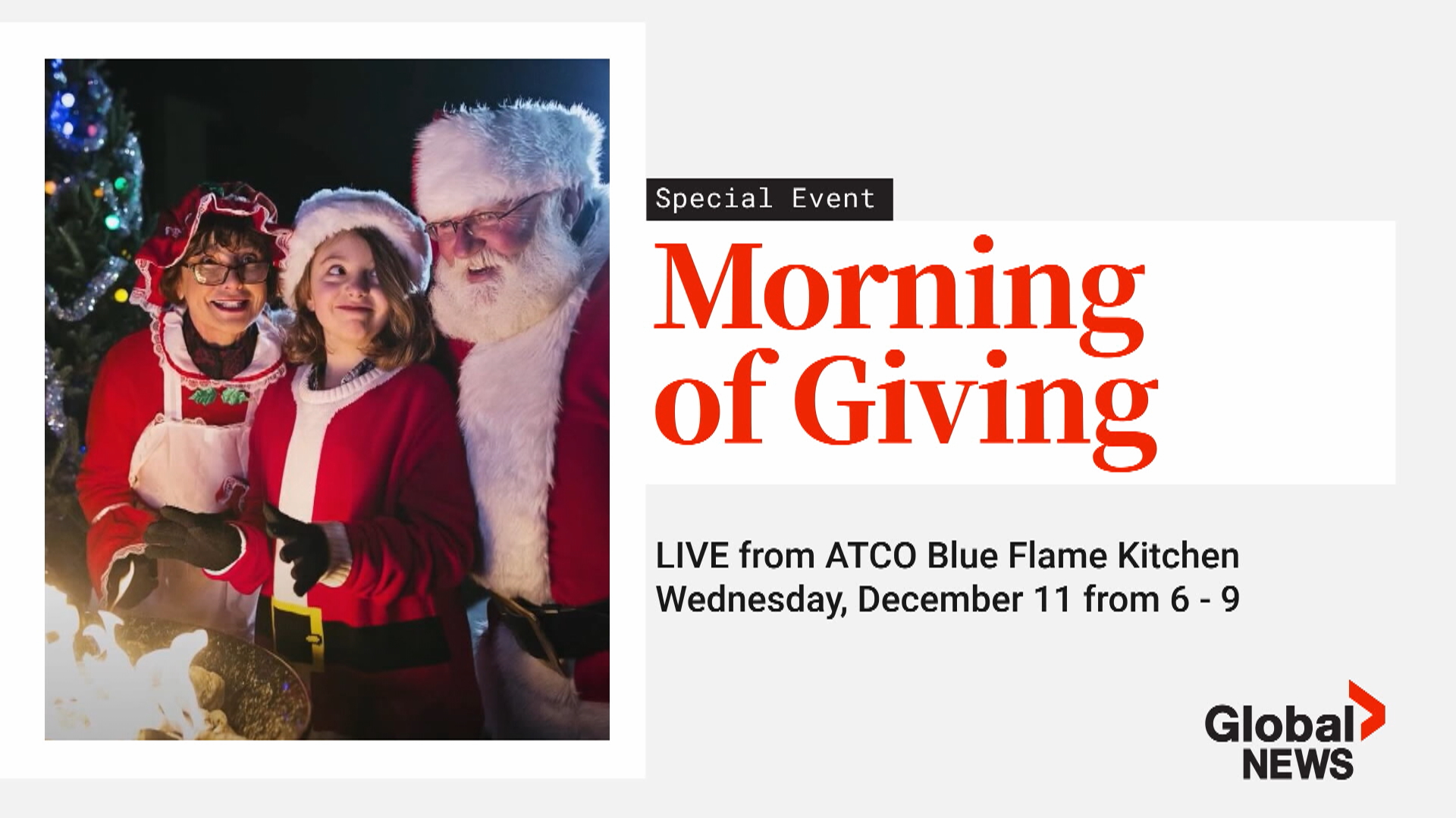 Global’s Morning of Giving charity fundraiser returns again this year to help spread some Christmas cheer to seniors, families and others in our communities who are in need.