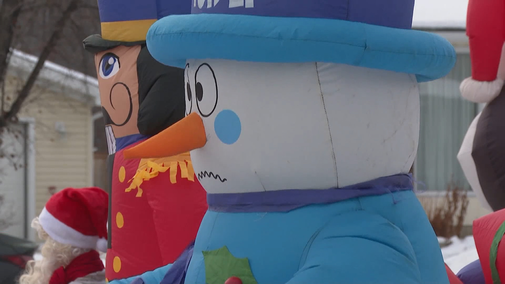 The couple has put up their Christmas display – which features dozens of inflatables – for the past ten years, allowing families from Deer Run and surrounding communities to get into the Christmas spirit, take photos, and share donations for the Calgary Food Bank.