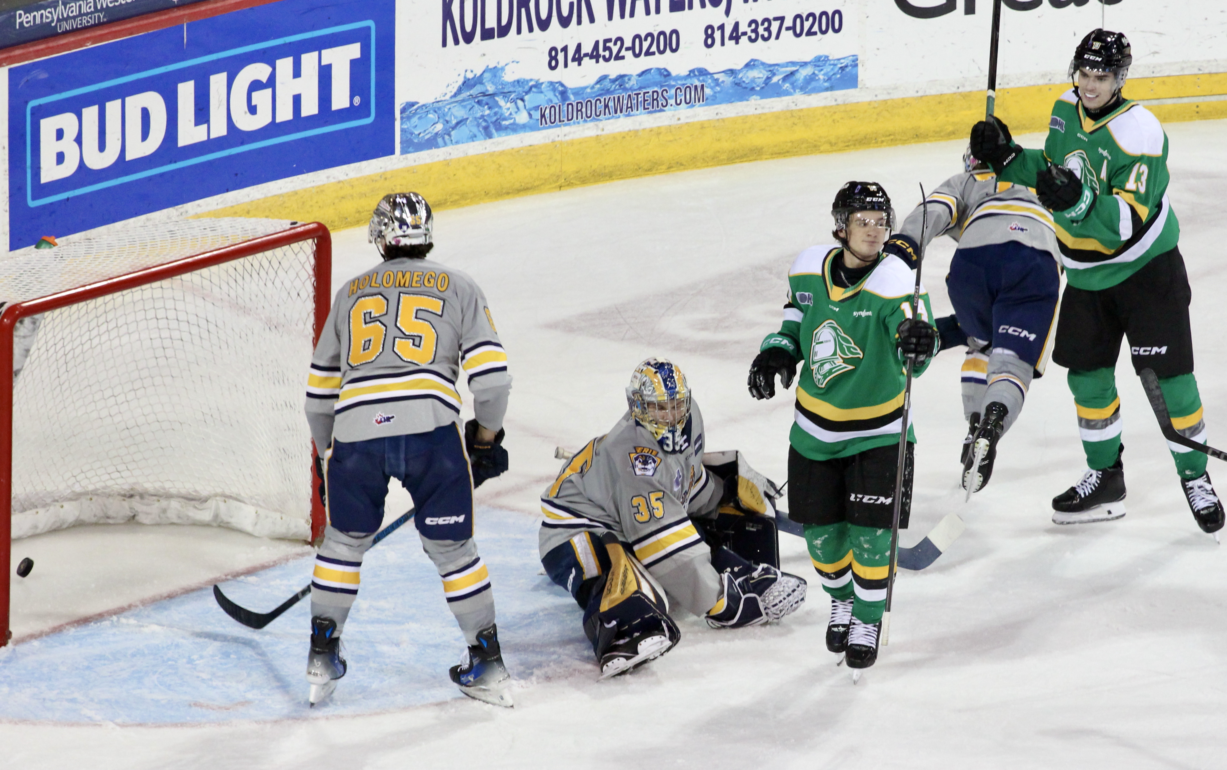 Erie forward Dylan Edwards scored off the rush on a nifty shot from the left side of the Knights zone at the 8:11 mark of the second to tighten the score to 3-1 before Julien and O’Reilly scored back to back just 11 seconds apart to break the game open a little over five minutes later.