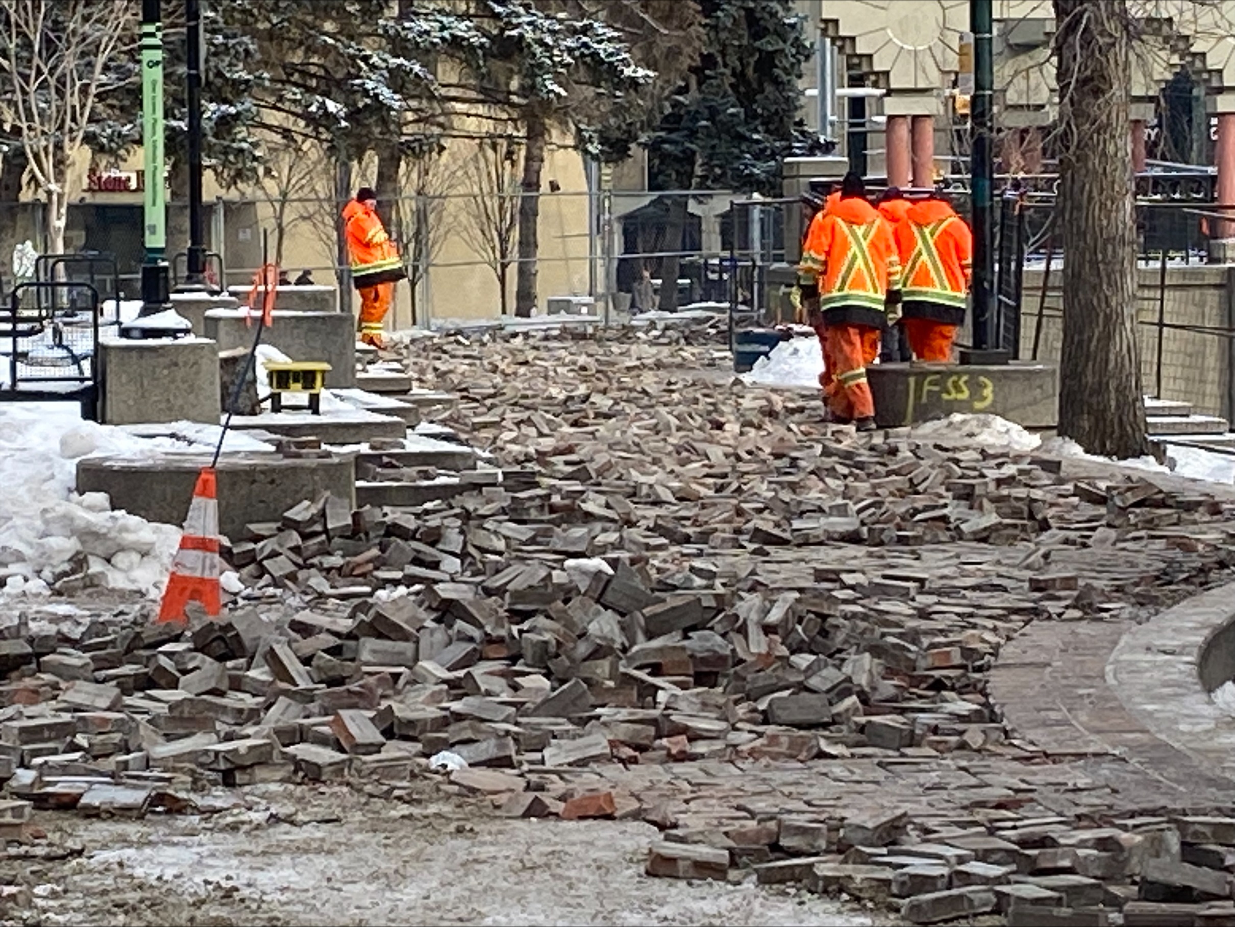 On Thursday, demolition crews were already on scene at Olympic Plaza involved in the process of recovering the bricks.