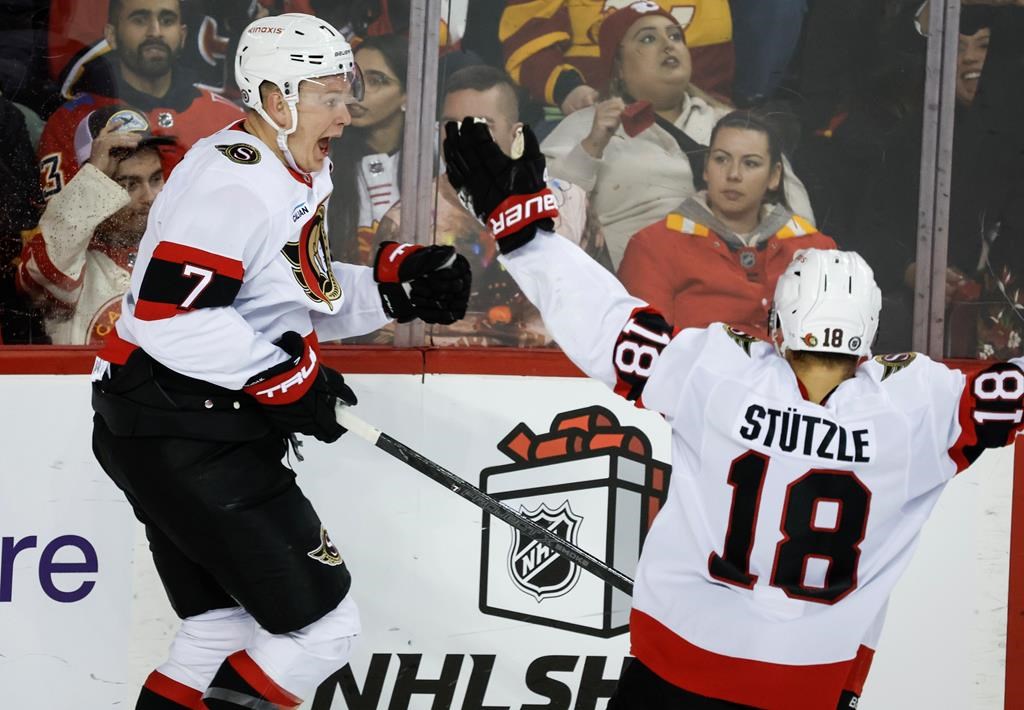 That was Brady Tkachuk’s stat line on Thursday night as Ottawa’s captain scored 55 seconds into extra time to give the streaking Senators a 3-2 victory over the Calgary Flames.