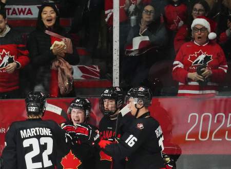 Canada pulled away with three goals in an 82-second span late in the first period at TD Place.