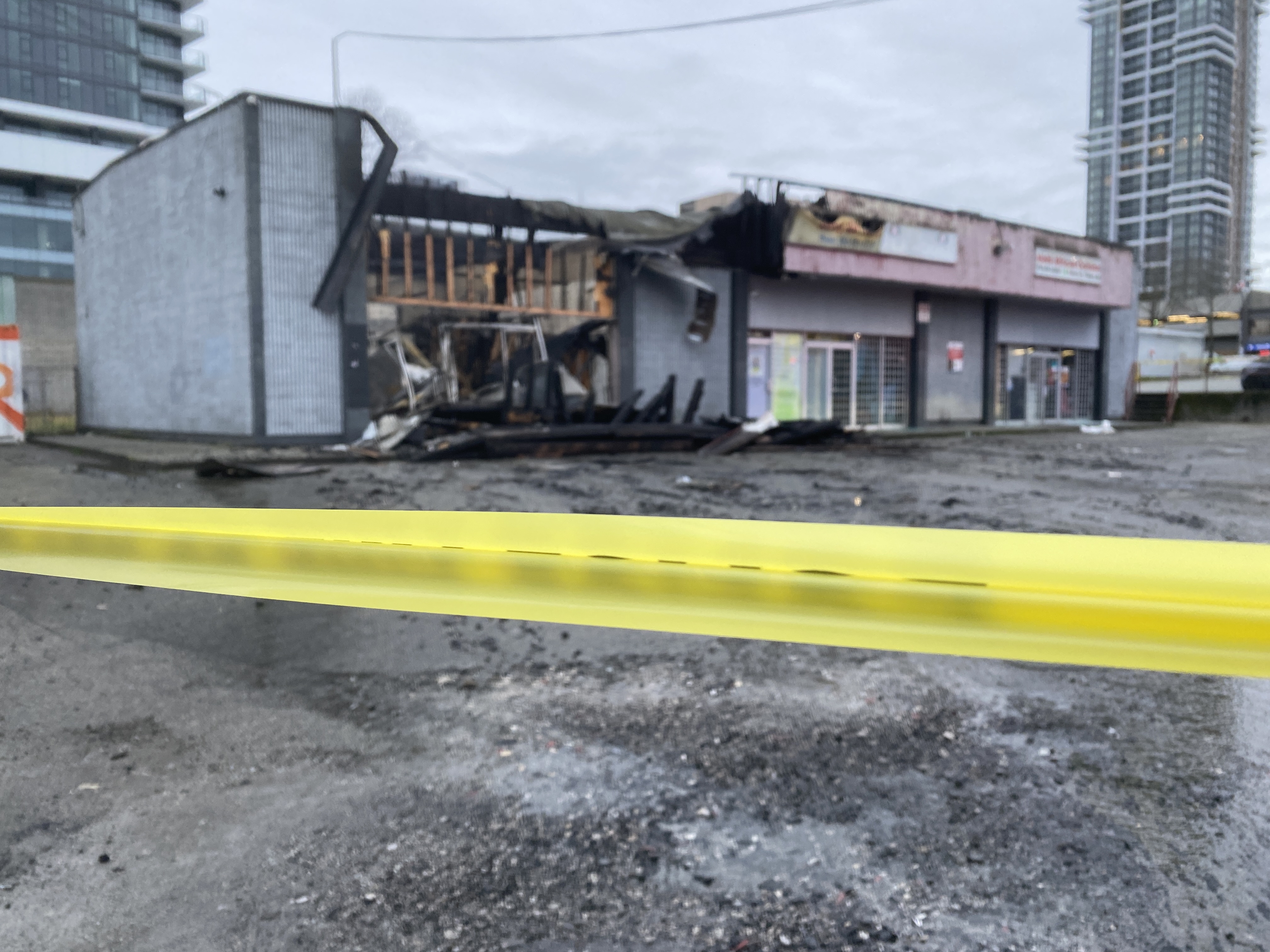 An overnight fire has destroyed businesses at a Surrey, B.C., strip mall.