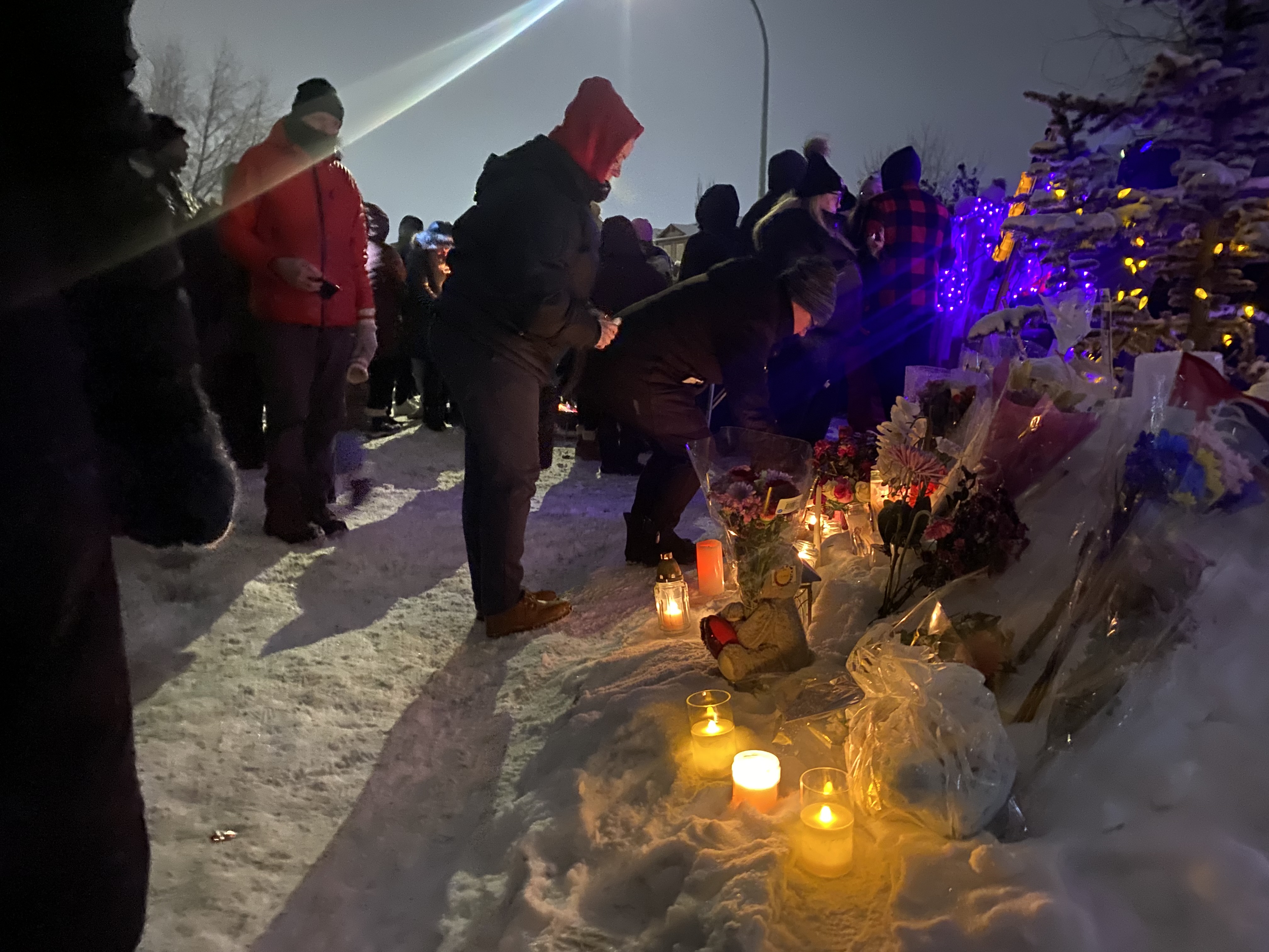 Five days after a Calgary mother of three and her father were killed in what police detectives believe were targeted attacks by her husband, a vigil took place to pay tribute to the victims.
