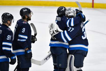 “Feels good,” said Hellebuyck. “The anticipation was killing me a little bit. It’s not how I played out this week, but I thought the guys played so hard in front of me and the crowd was incredible tonight, so that’s a very memorable one.”