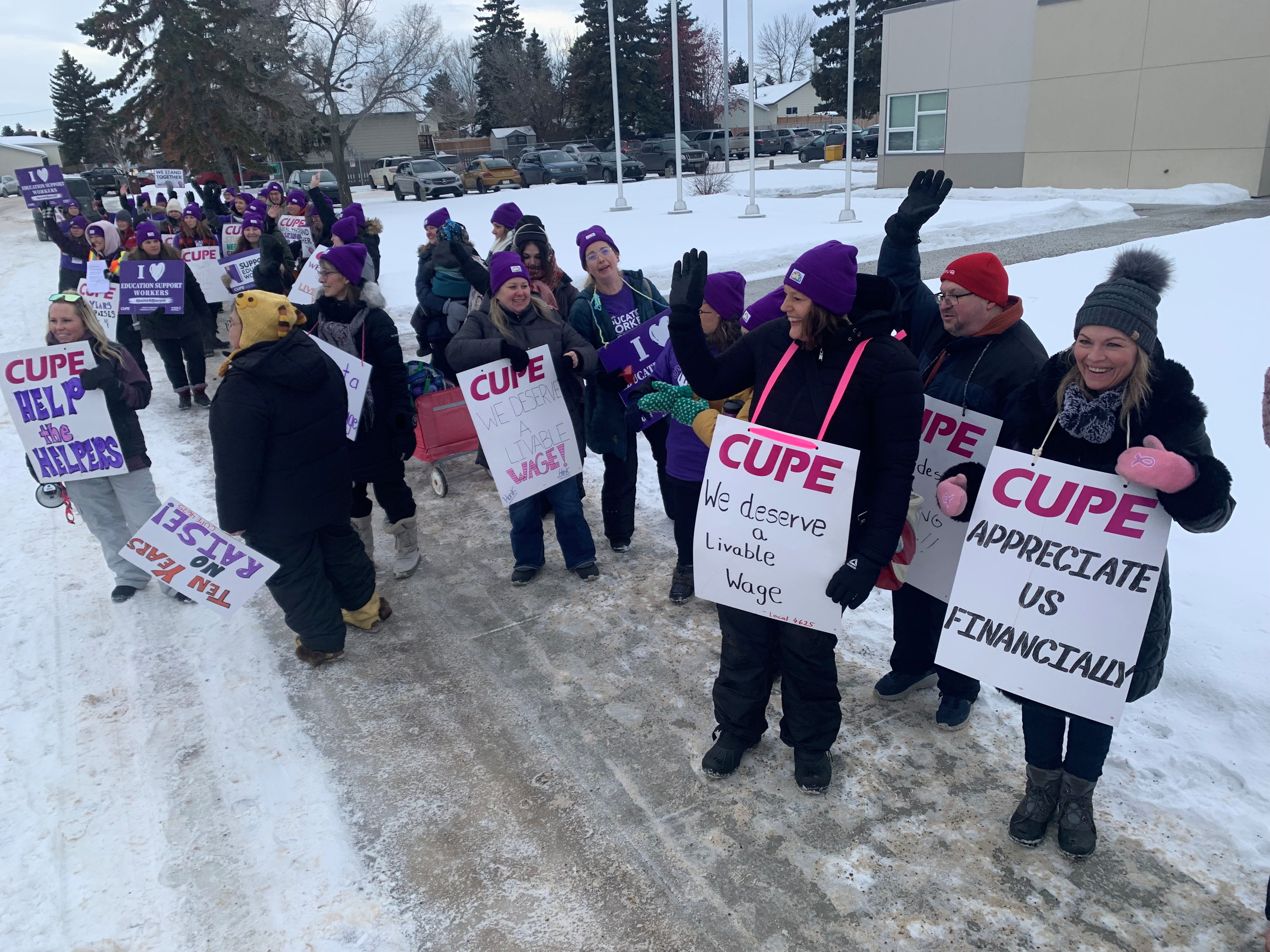 The Canadian Union of Public Employees says more than 200 educational support workers in a school district north of Edmonton are on strike until there is a settlement with their employer.