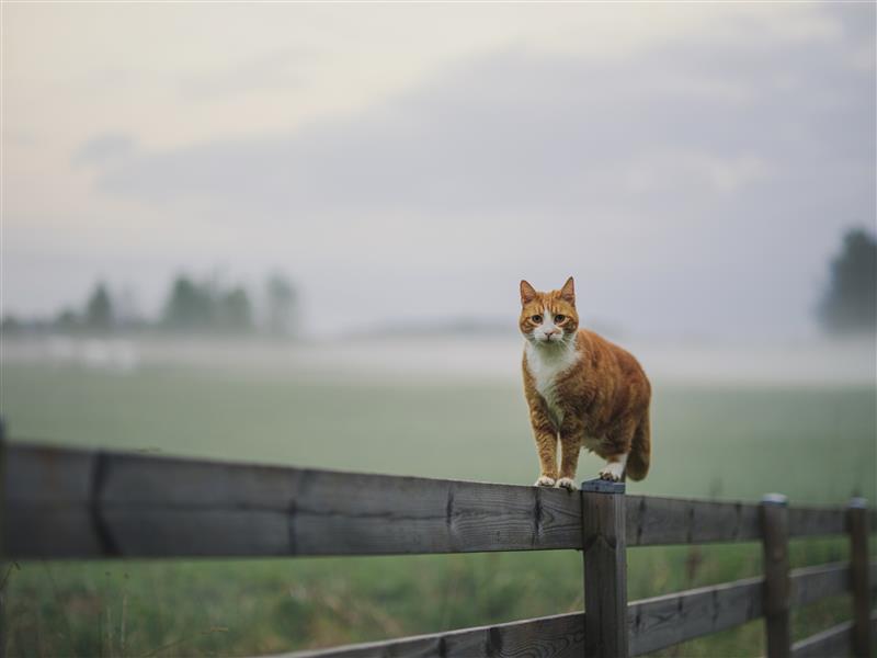 - Neighbour’s cat sits on the fence and stares at them.