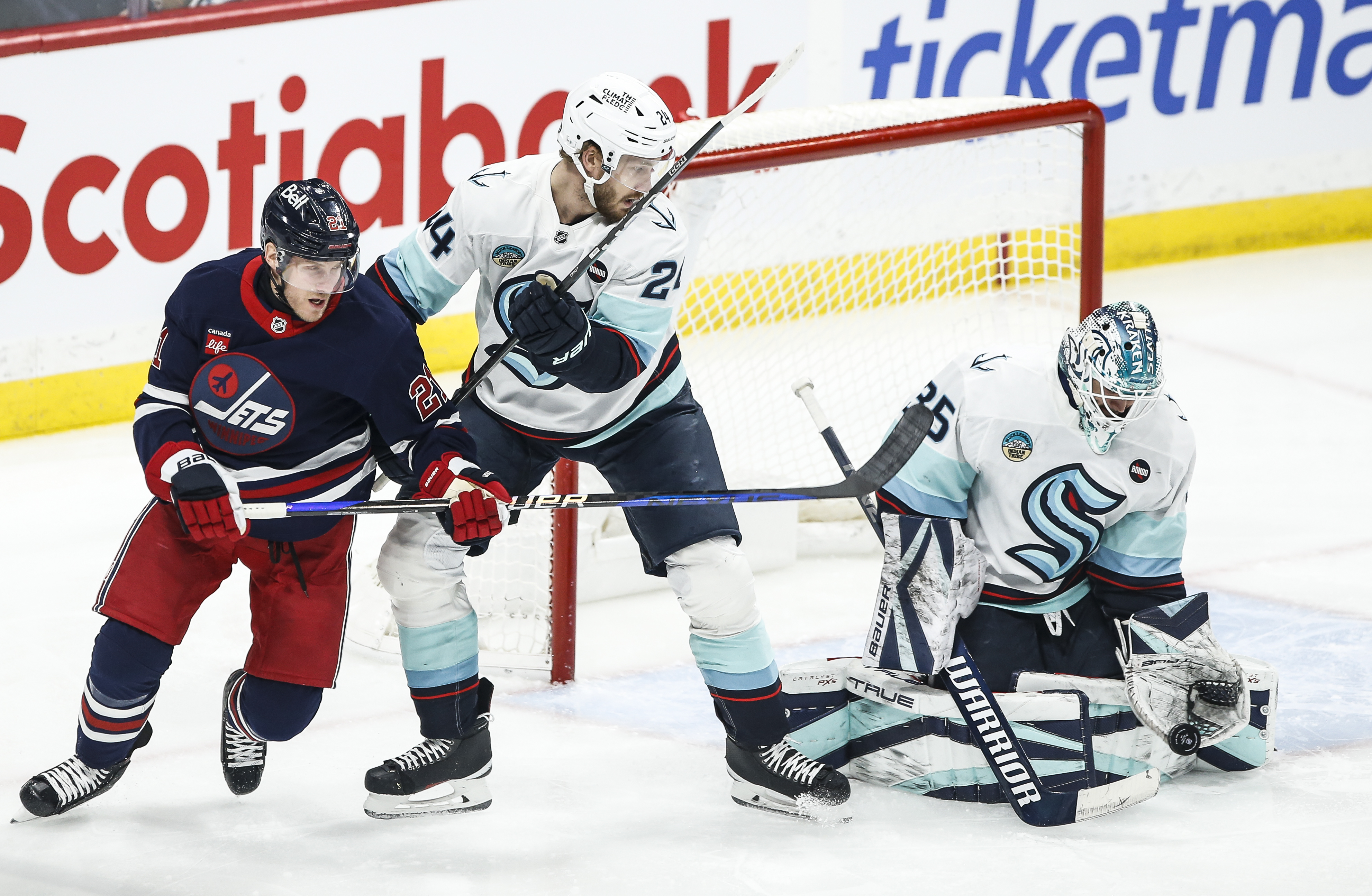 Seattle got the first power play of the game when Logan Stanley was given a questionable penalty for elbowing, and while the Jets managed to kill it off, it wasn’t long after the kill that the Kraken opened the scoring.