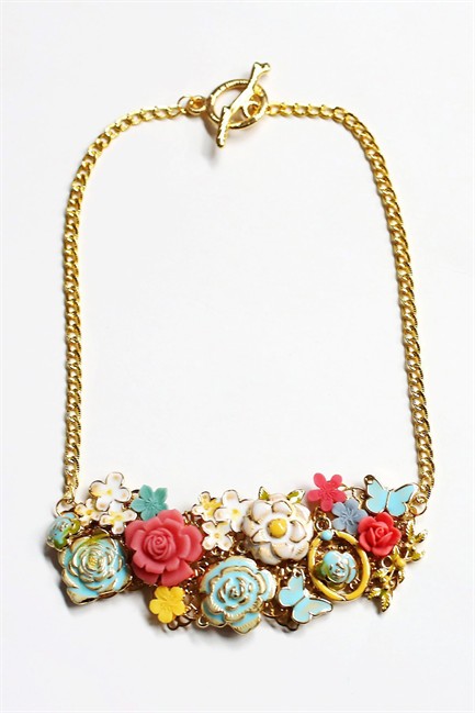 Detailed instructions with photos for the DIY Enamel Spring Flower Bib Necklace are at Cais’ blog, Chic Steals.