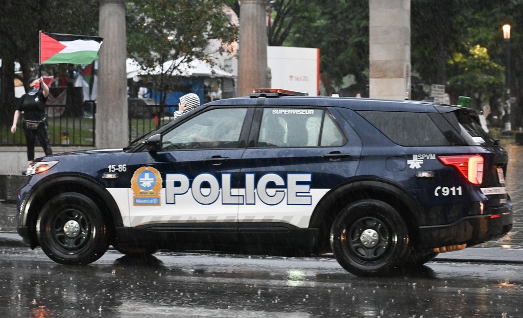 Police are investigating after a group allegedly smashed windows and graffitied the entrance to McGill University with the message, “Free Palestine.”