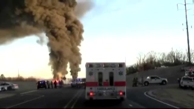 Fire officials say the explosion happened earlier this morning. Heavy flames and black smoke can be seen from a distance.