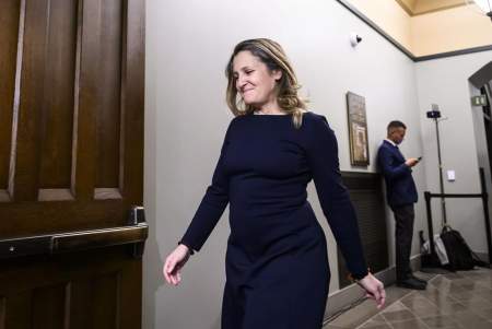 Freeland said she would cut taxes for middle-class Canadians and in her first year as prime minister she would cut the second income tax bracket rate from 20.5 per cent to 19 per cent, saving Canadians $550 per year, or $1,100 for a couple.