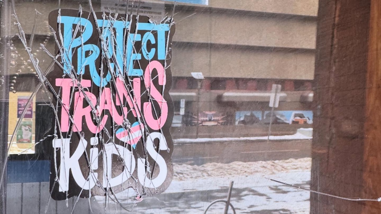 The damage to the window was directly over a “Protect Trans Kids” poster that was posted on the inside of the glass, police said.