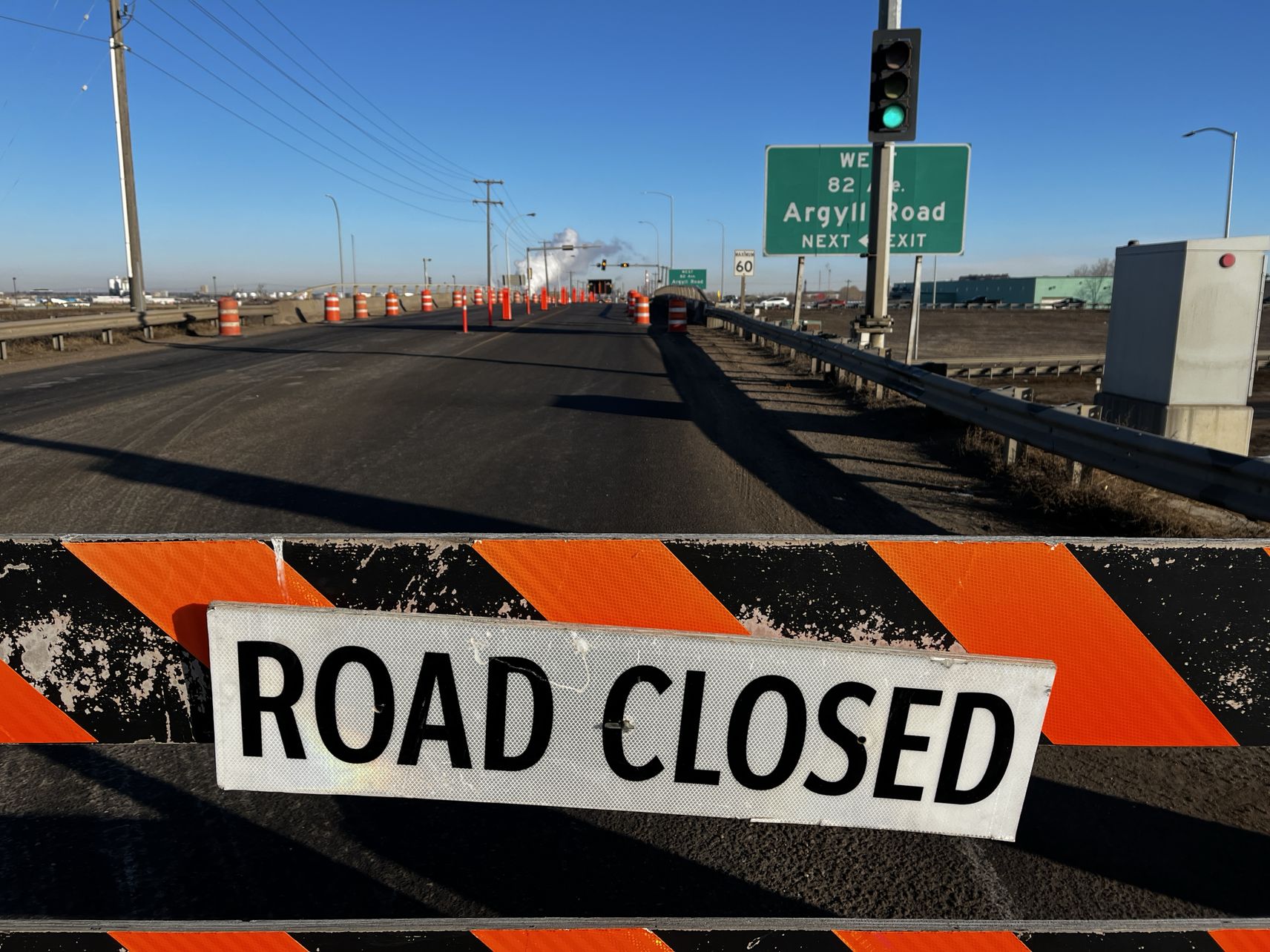 The 34 Street overpass was closed in both directions as a result, and westbound traffic into Edmonton from Sherwood Park was affected. Eventually, westbound traffic was diverted to the on and off ramps for the overpass to get around the damaged section.