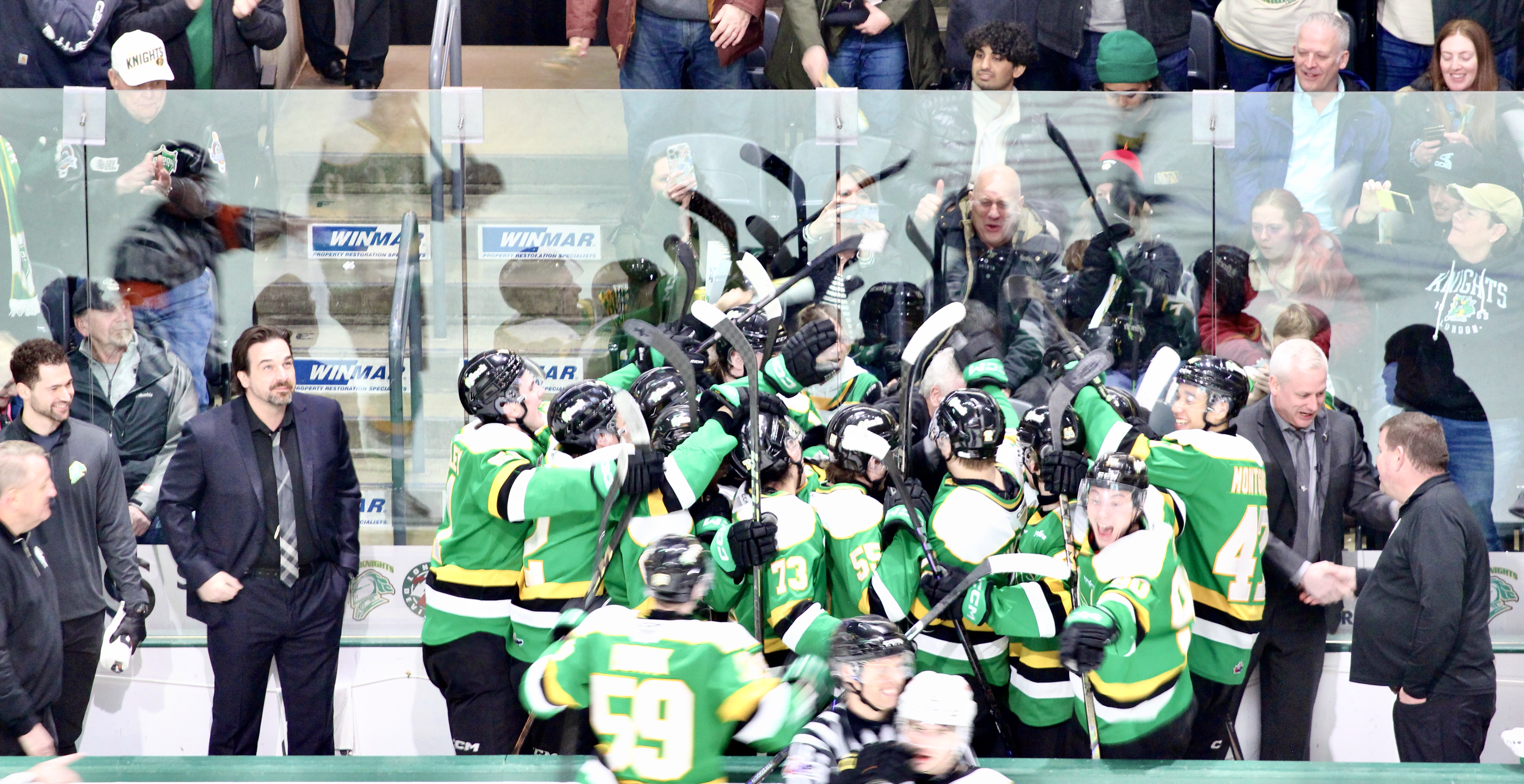 Later in the period Landon Sim corralled a bouncing puck in front of the Kingston net and backhanded it by Charlie Schenkel to increase the Knights lead to a pair through 40 minutes.