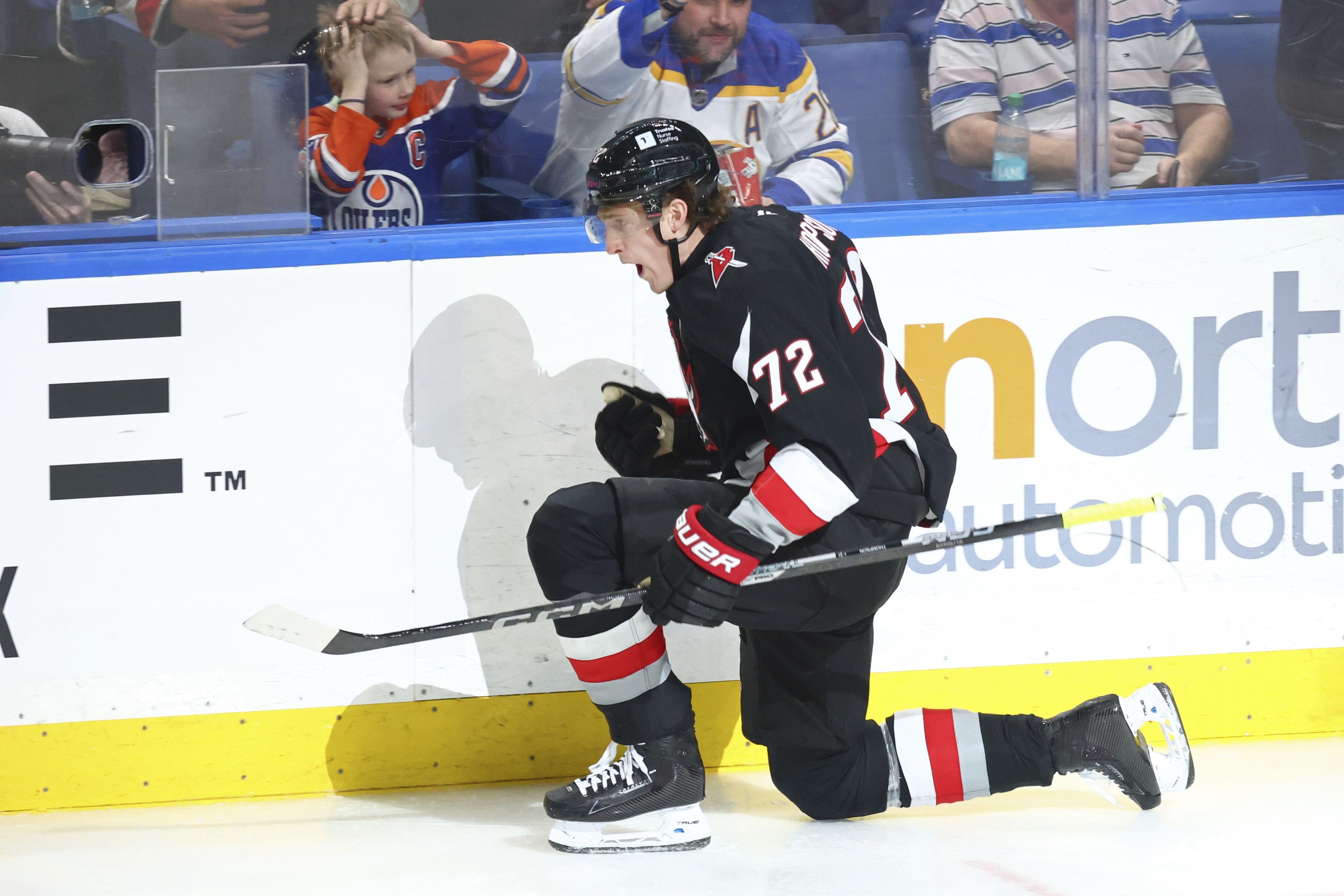 Tage Thompson scored two goals and led the Buffalo Sabres to a 3-2 win against the Edmonton Oilers on Monday night.