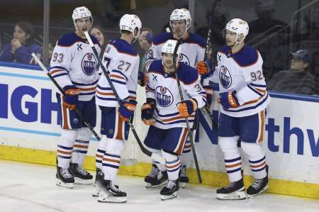 Corey Perry and Connor McDavid also scored for Edmonton, which won its second-straight to complete a four-game road trip. The Oilers were coming off a 2-1 overtime win over the Islanders on Friday. Ryan Nugent-Hopkins had three assists and Stuart Skinner finished with 21 saves.