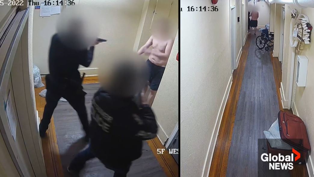 Global News obtained video of the fatal confrontation between a shirtless, shoeless man holding an object in one hand and three officers, one armed with a Taser, one with a beanbag shotgun and one with his service pistol.
