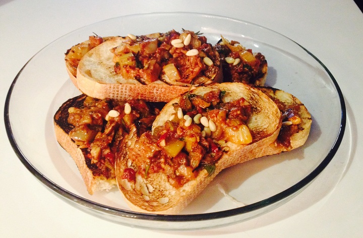 Serve on well-grilled country style bread, top with toasted pine nuts and olive oil.