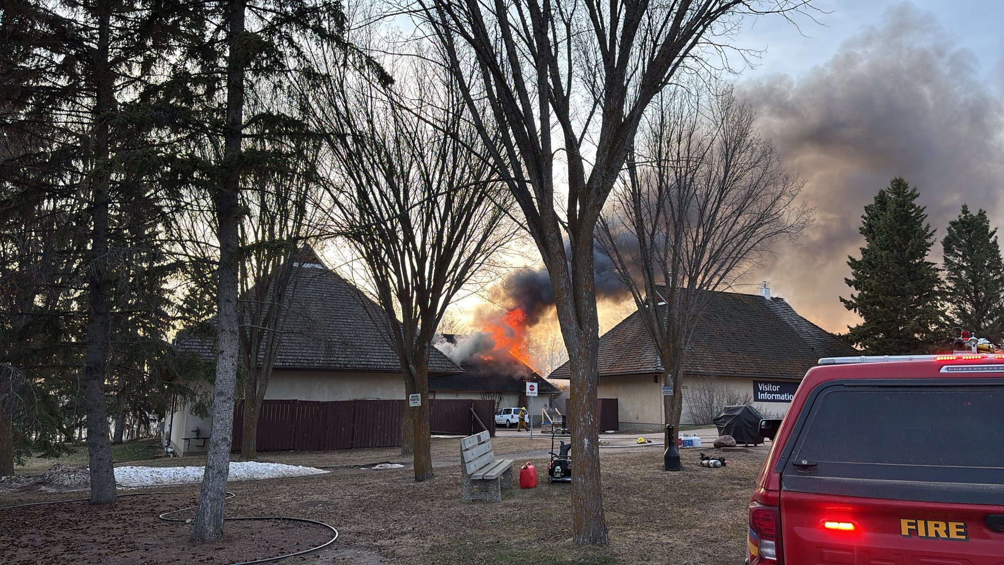 A beloved heritage site east of Edmonton near Lamont County caught fire late Friday afternoon amid warm, dry conditions and windy weather.