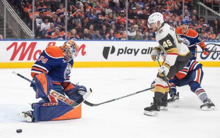Edmonton went up 3-0 just over seven minutes into the middle frame as Kane elected to shoot on a two-on-one and it hit a defender’s skate and deflected in for his fourth of the post-season.
