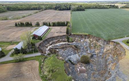 He says the landslide left a hole estimated at more than 300 metres long and 100 metres wide.