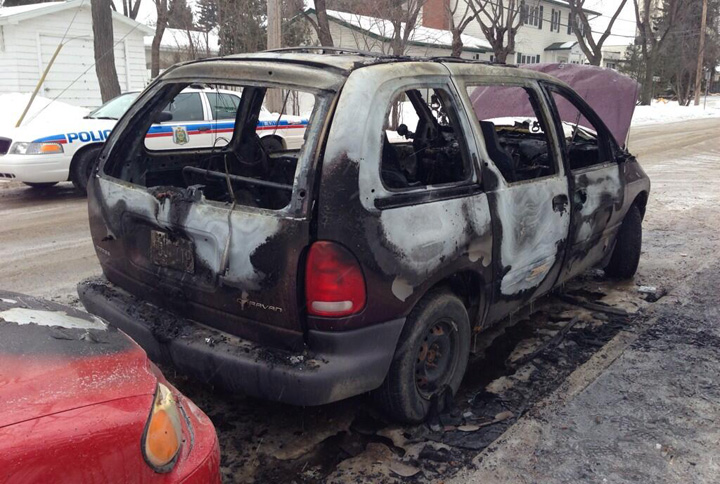 SASKATOON – Saskatoon police are investigating a torched vehicle after an armed robbery on Saturday.