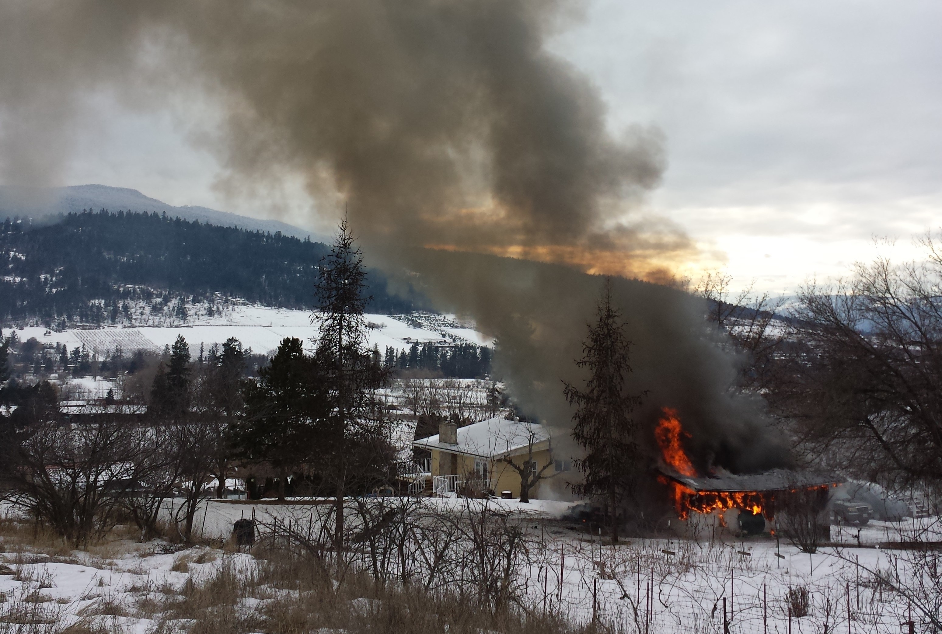 COLDSTREAM, B.C. — A detached garage on Thorcutt Road in Coldstream went up in flames Sunday afternoon.