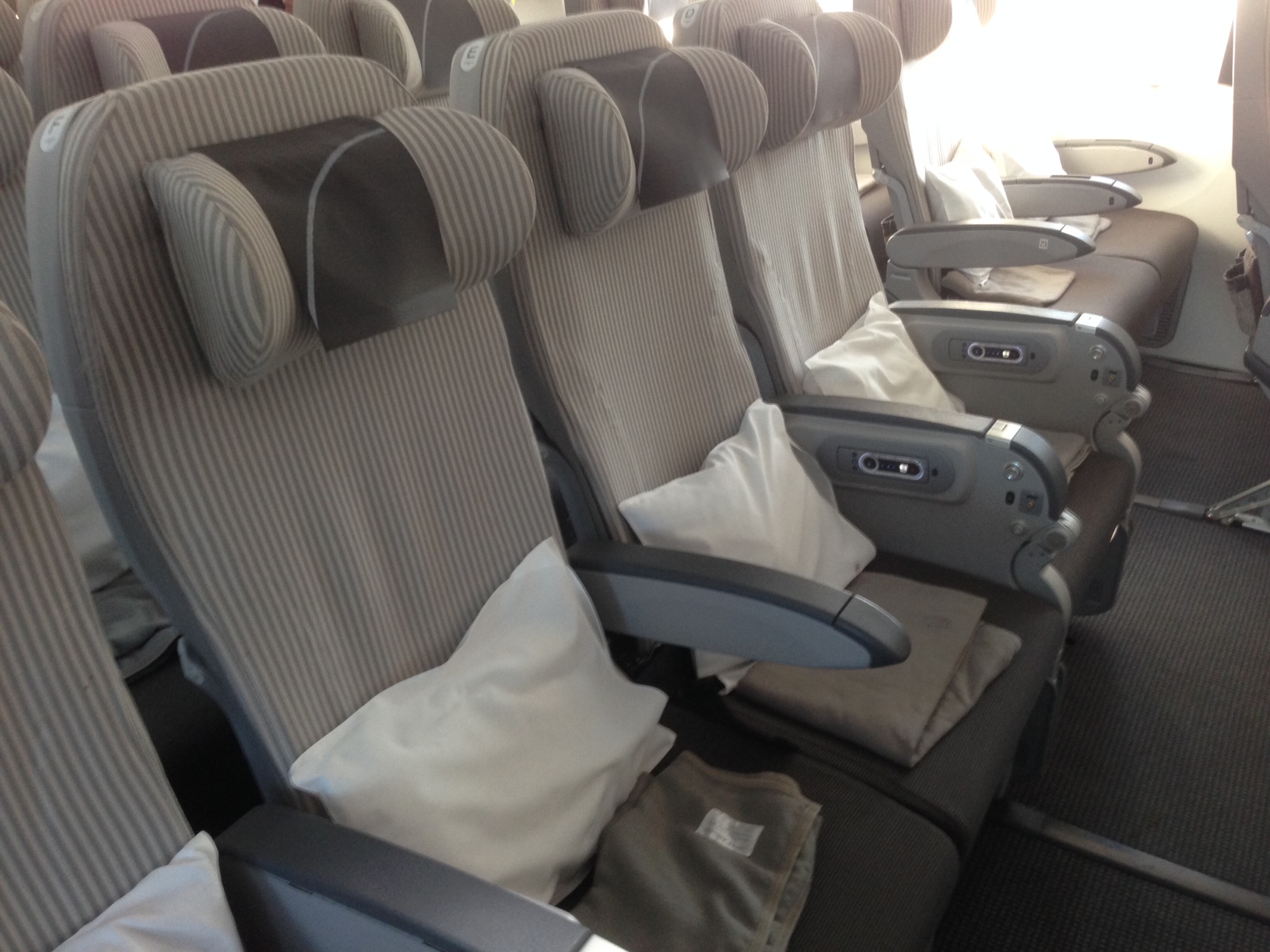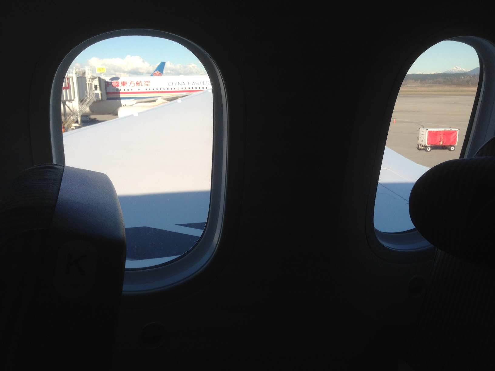 The plane operated by Japan Airlines features extra-large windows equipped with an electronic dimming system instead of pull-down blinds and lower air pressure to reduce jet lag.