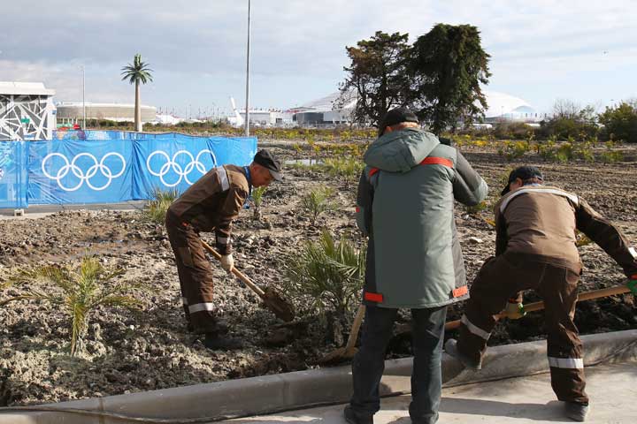 Bleary-eyed from our midnight flight into Sochi, my cameraman and I are dragging our luggage over to the Gorki Panorama hotel in the Olympic Zone’s “mountain cluster.”