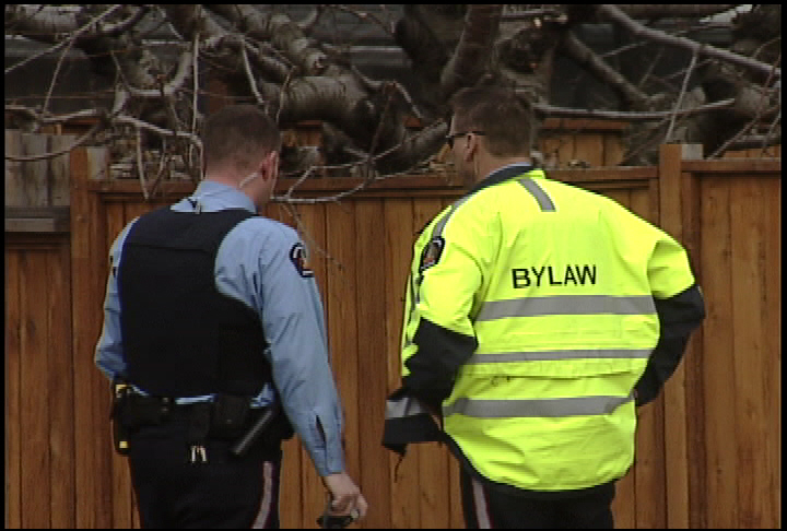 The bylaw officer stepped in front of the pick-up but had to jump part way onto the hood to avoid being run over.
