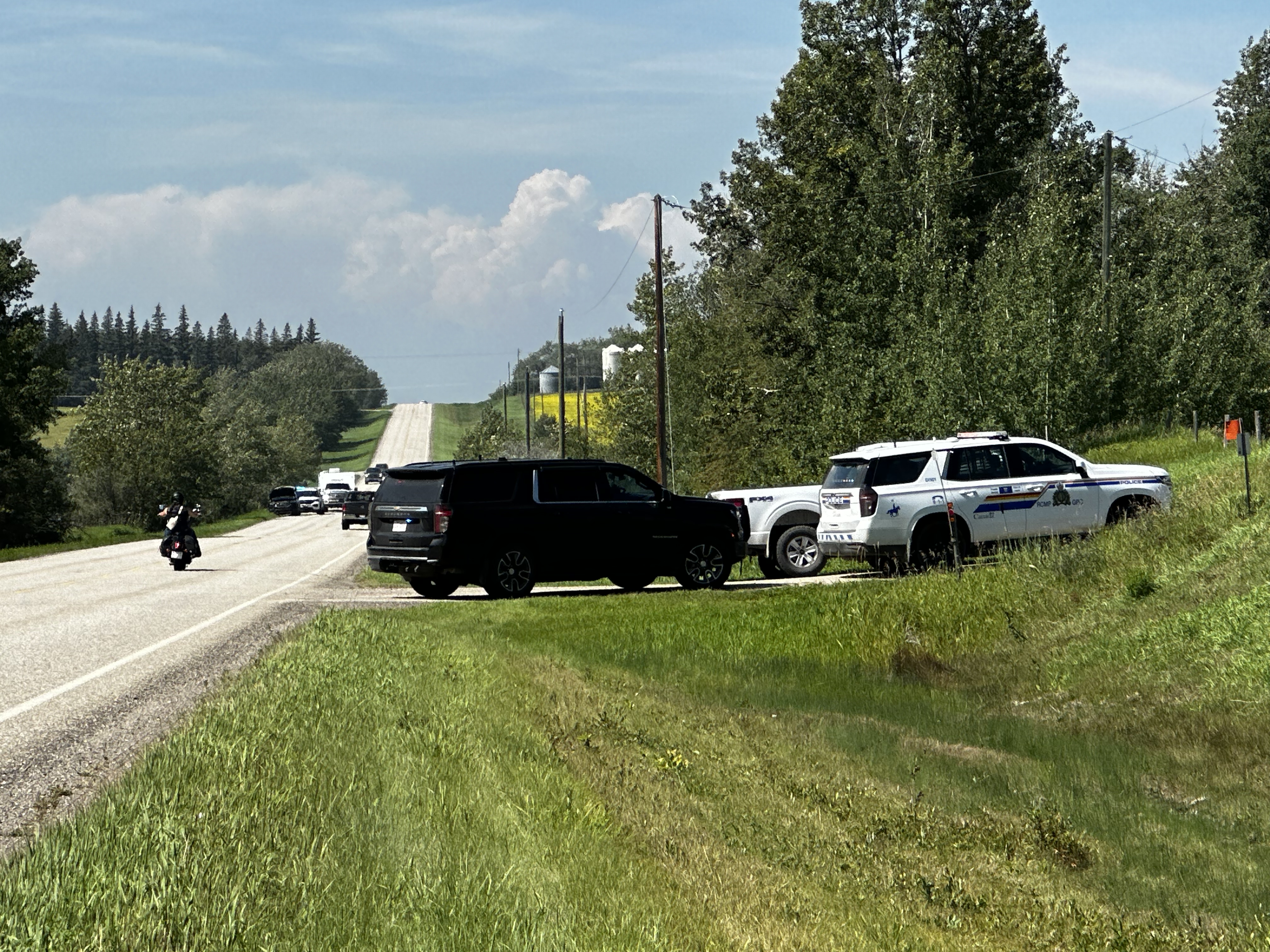 In a written advisory, sent to the media just after 11:30 a.m. on Friday and also posted on social media, police said they are tracking “a suspect” in the area between Highway 587 and Township Road 350, from Range Road 12 to Range Road 14.