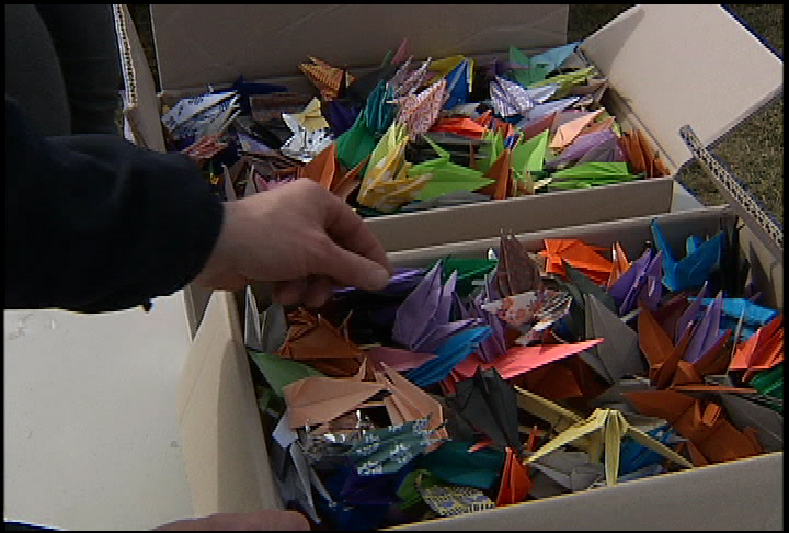 The students have been folding cranes for more than a week and are accepting donations to teach others how to do the origami.