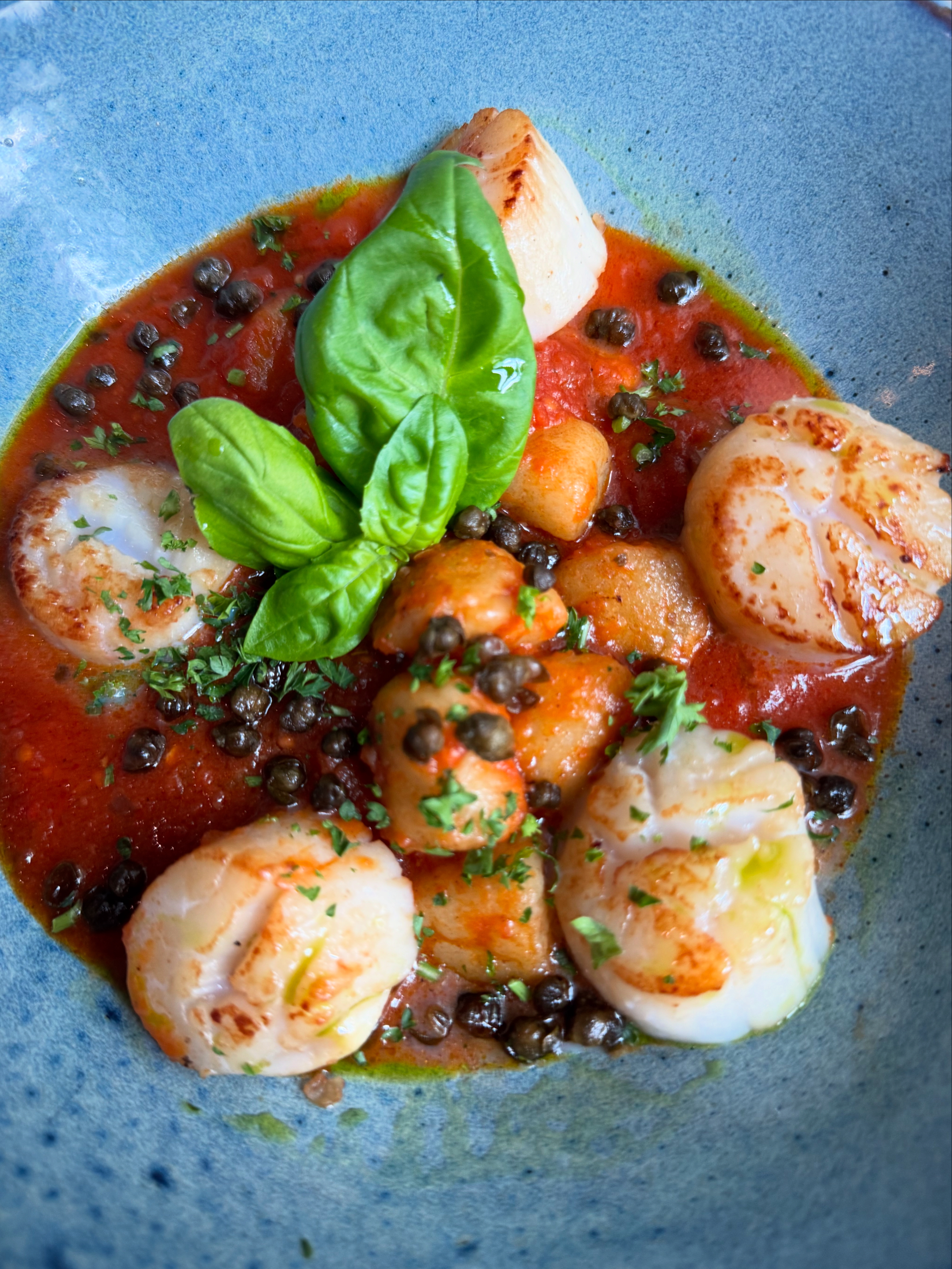 Scallop Gnocchi: Scallop Gnocchi strikes the perfect balance between summer freshness and satisfying comfort. August is peak season for scallops in many coastal regions, making them exceptionally sweet, tender, and ideal for showcasing on a seasonal menu. Paired with light, pillowy gnocchi and vibrant summer ingredients like fresh herbs, tomatoes, corn, or citrus, the dish feels elegant yet approachable, perfect for warm weather without being too heavy. And it is also perfect for September, the transition between summer and fall.