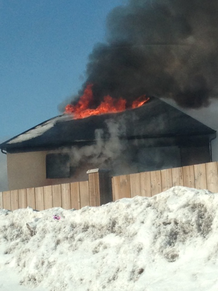 The blaze broke out at about 1:30 p.m. at 134 Ed Golding Bay, a large two-storey home in a development built in 2011. The fire started in the basement but within minutes had engulfed most of the house.