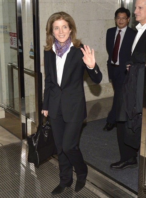 Okinawa is home to more than half of the 47,000 American troops based in Japan under a bilateral defence pact. Kennedy, who arrived later Tuesday, is to meet with Okinawan officials and may see the base relocation site during her three-day visit, Kyodo News agency reported.