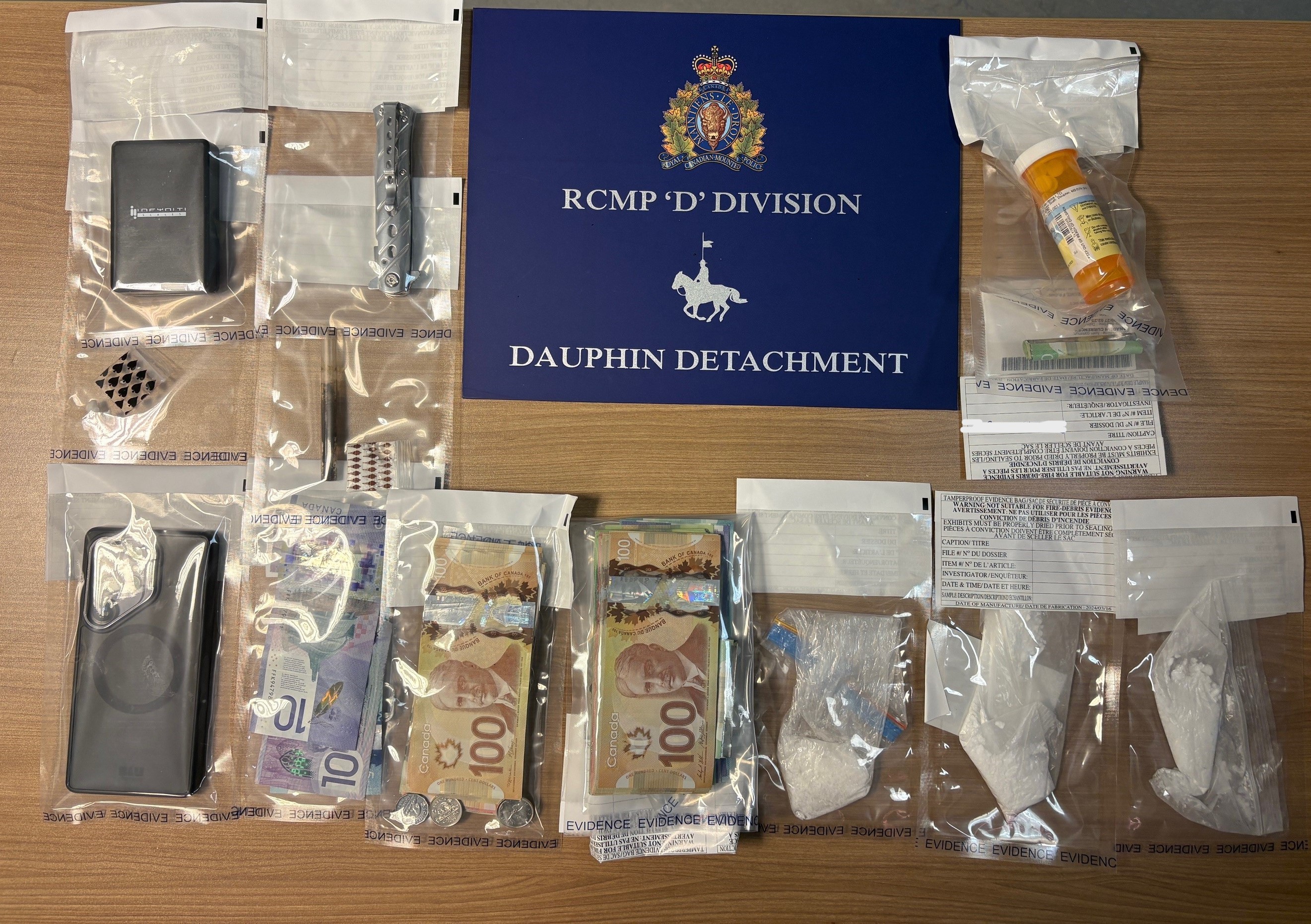 A 20-year-old from Tootinaowaziibeeng First Nation is in custody facing three counts of possessing a controlled substance for the purpose of trafficking, as well as individual charges for uttering threats, weapon possession, possessing property obtained by crime, assault with a weapon, and failing to comply with release conditions.