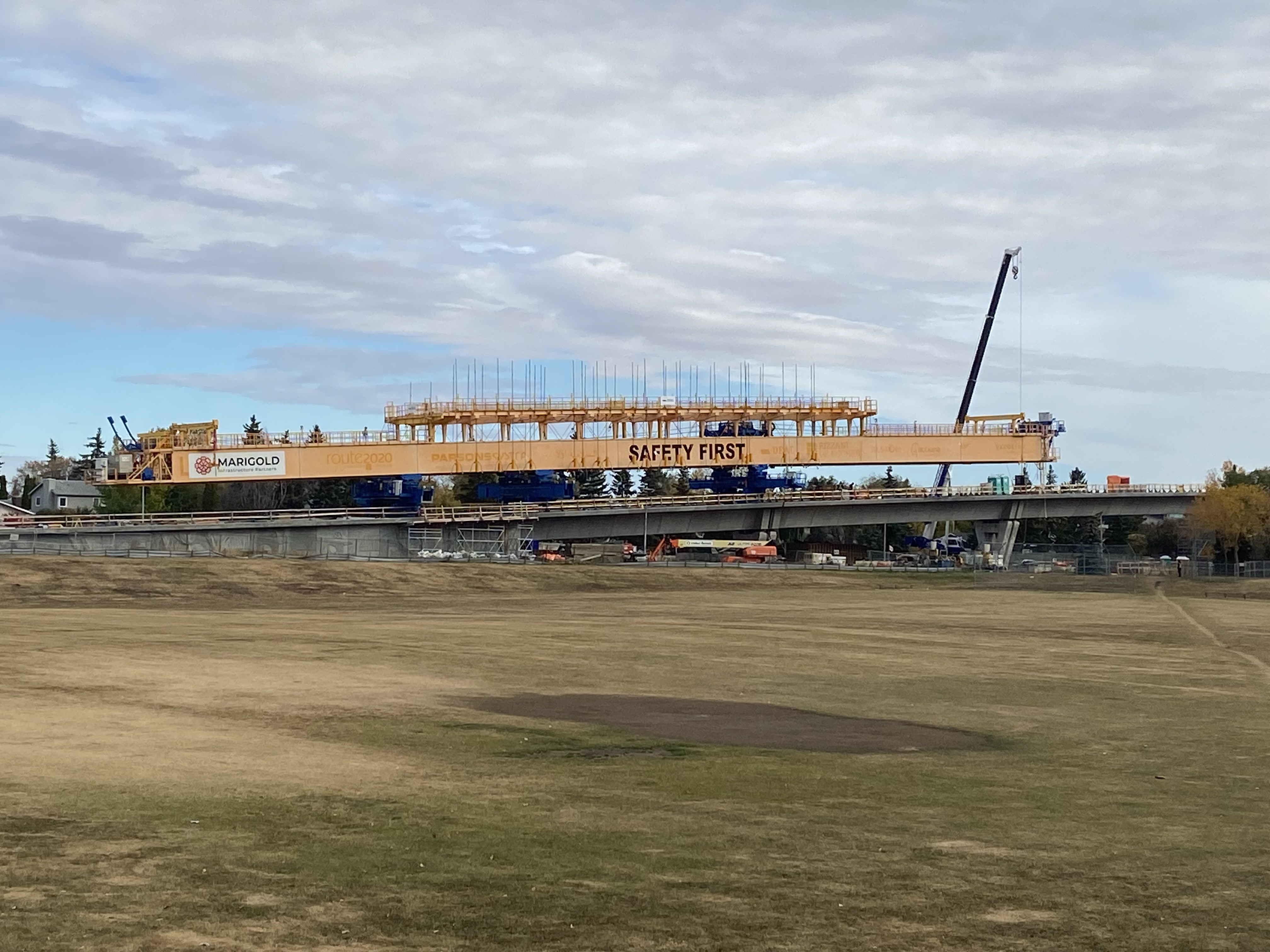 “The traffic below was a real consideration and so without the gantry, it would have been very difficult to build this type of guideway structure through a busy portion of Edmonton,” Lazerus said.